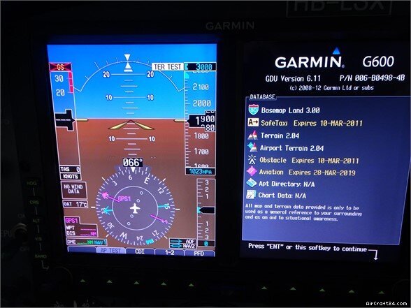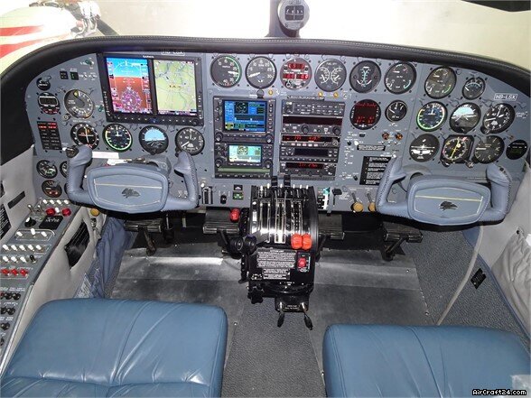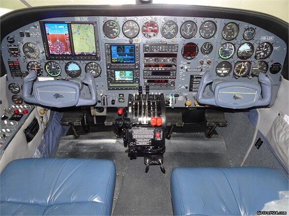 | Avionique | | Avionics and autopilot upgrade per EASA Mod. 0060029550-001 PS Engineering PMA8000C Audio Panel, Intercom, Marker Beacon Garmin GNS530W NAV-COM-GPS, interfaced with Radar System Garmin GNS430W NAV-COM-GPS Garmin G-600, EASA STC.A.S.037679 (Garmin GDU620) with TAWS and Synthetic Vision, Radar Display King KI206 Number Two NAV Indicator King KX165A NAV-COM 3, 8.33 kHz S-TEC 55X Autopilot with Computerl, Transducer, Roll/Pitch/Trim Servos, Turn and Bank, Yaw Damper, FAA STC SA8890SW-D, LBA Validated Shadin Digidata-L with Fuel Flow Option grandfathered FAA STC SA00729SE-D King KN63 DME, displayed on Garmin G600 King KR87 ADF displayed on Garmin G600 Garmin GTX330 XPDR S Number 1 Garmin GDC74A Encoder King KT73 XPDR S Number 2 ACK A30.4 Encoder Garmin GWX68 Weather Radar displayed on Garmin G600 King KRA10A Radar Altimeter Altitude Alerter integrated in the Garmin G600 L-3 Sky 497 TAS System displayed on Garmin G600 and GArmin GNS530W, connected to ACK A-30.4 Encoder Artex ELT ME406, PN 453-6603, 406 Mhz Intercom for all Occupants EDM760 Engine Analyzer Astro Tec Digital Clock/Timer Complete Co-Pilot Instrument Panel ASR EPU6A5 Emergency Power Supply Attitude Gyro, Attitude Indiator, Vertical Speed Indicator, both Airspeed Indicators, Fuel Quantity Indicator, Manifold Pressure Indicator repaired by Avionitec on 20.09.2013 Main Battery replaced on 20.09.2013 Both Attitude Indicators and Tachometers repaired by Avionitec on 30.03.2015 Radar Antenna GWX68 replaced on 02.11.2016 HSI replaced on 14.12.2018 |