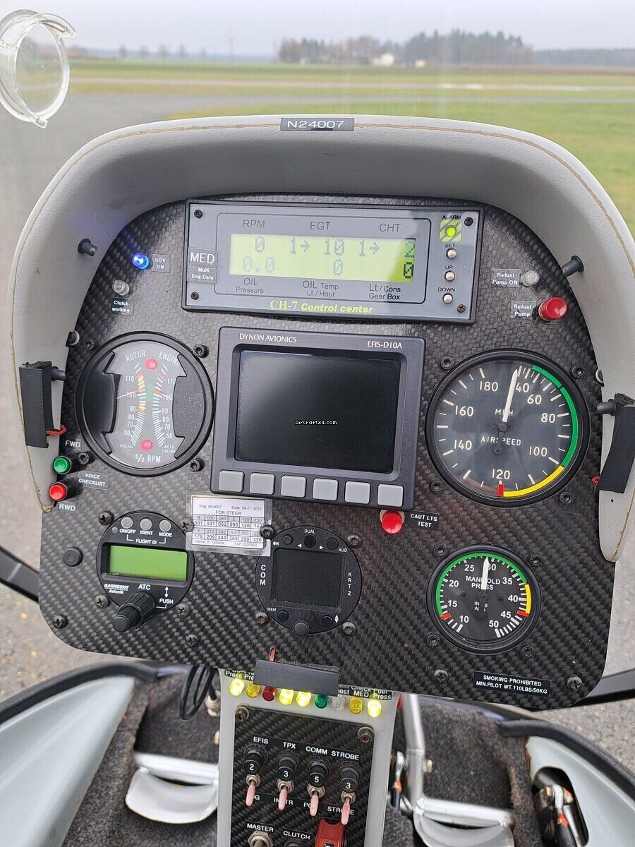 | Description | | Type: | Hélicoptère (Piston) | | Type spécial: | Fait maison/Experimental | | Marque: | CH-7 | | Modèle: | Kompress Charlie | | Millésime: | 2009 | | Immatriculation: | N24007 | | Numéro de série: | 148 | | Attributs: | Toujours sous hangar | | Visite annuelle: | 10/2024 | | Emplacement: | Allemagne, EDQP | | Heures totales cellule (TTAF): | 522 h | | Prix: | € 35'000 (~ CHF 32'666) | | Nombre de passagers: | 1 | | Atterrissages: | 550 |