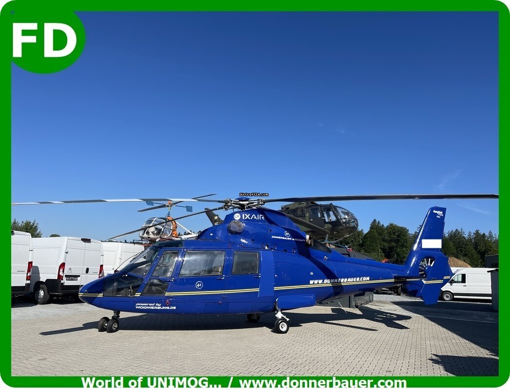 | Description | | Type: | Hélicoptère (Turbine) | | Marque: | Eurocopter | | Modèle: | AS 365 Dauphin , für Schulung , Deko | | Millésime: | 2000 | | Emplacement: | Allemagne, Hinterschmiding | | Heures totales cellule (TTAF): | 123456 h | | Prix: | € 139'000 (~ CHF 129'729) | | VAT stated sep.: | non |