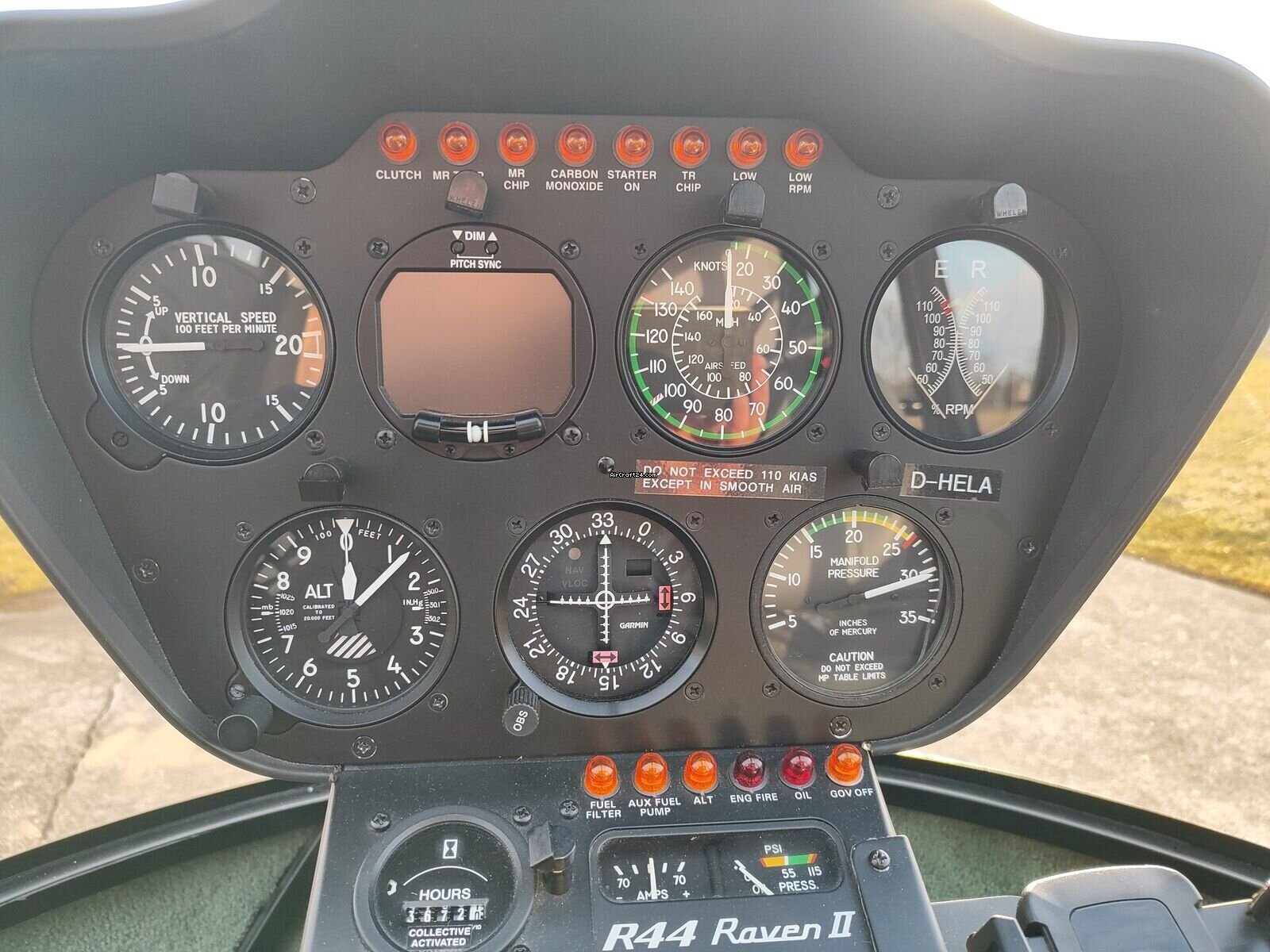 | Description | | Type: | Hélicoptère (Piston) | | Marque: | Robinson | | Modèle: | R 44 Raven II | | Millésime: | 2004 | | Attributs: | Toujours sous hangar Enregistré usage commercial | | Visite annuelle: | 11/2025 | | Emplacement: | Allemagne, Kemnitz bei Greifswald | | Heures totales cellule (TTAF): | 3672 h | | Prix: | € 195'000 (~ CHF 176'748) | | UE VAT payée: | oui | | VAT stated sep.: | oui (19%) | | Détails |