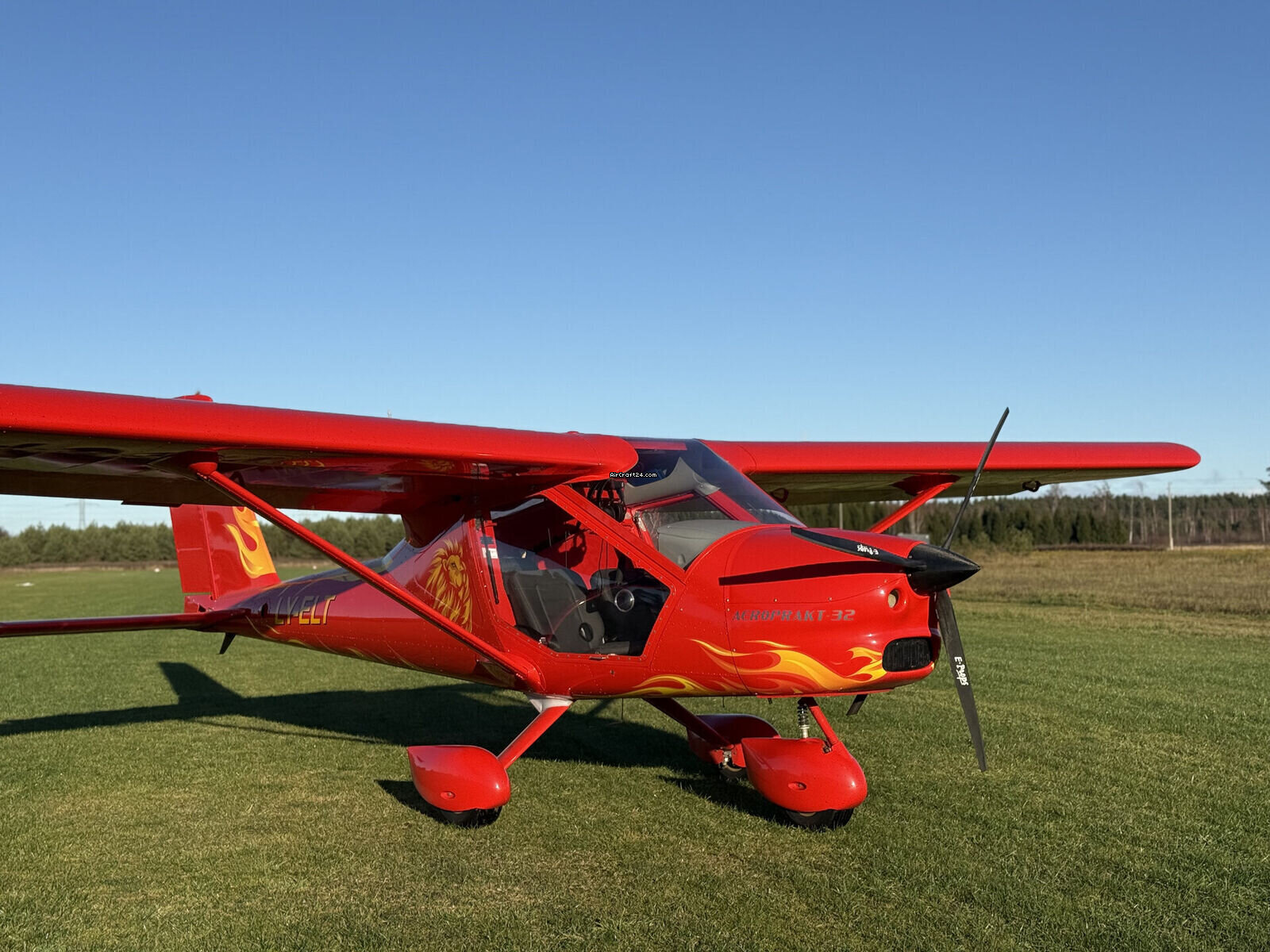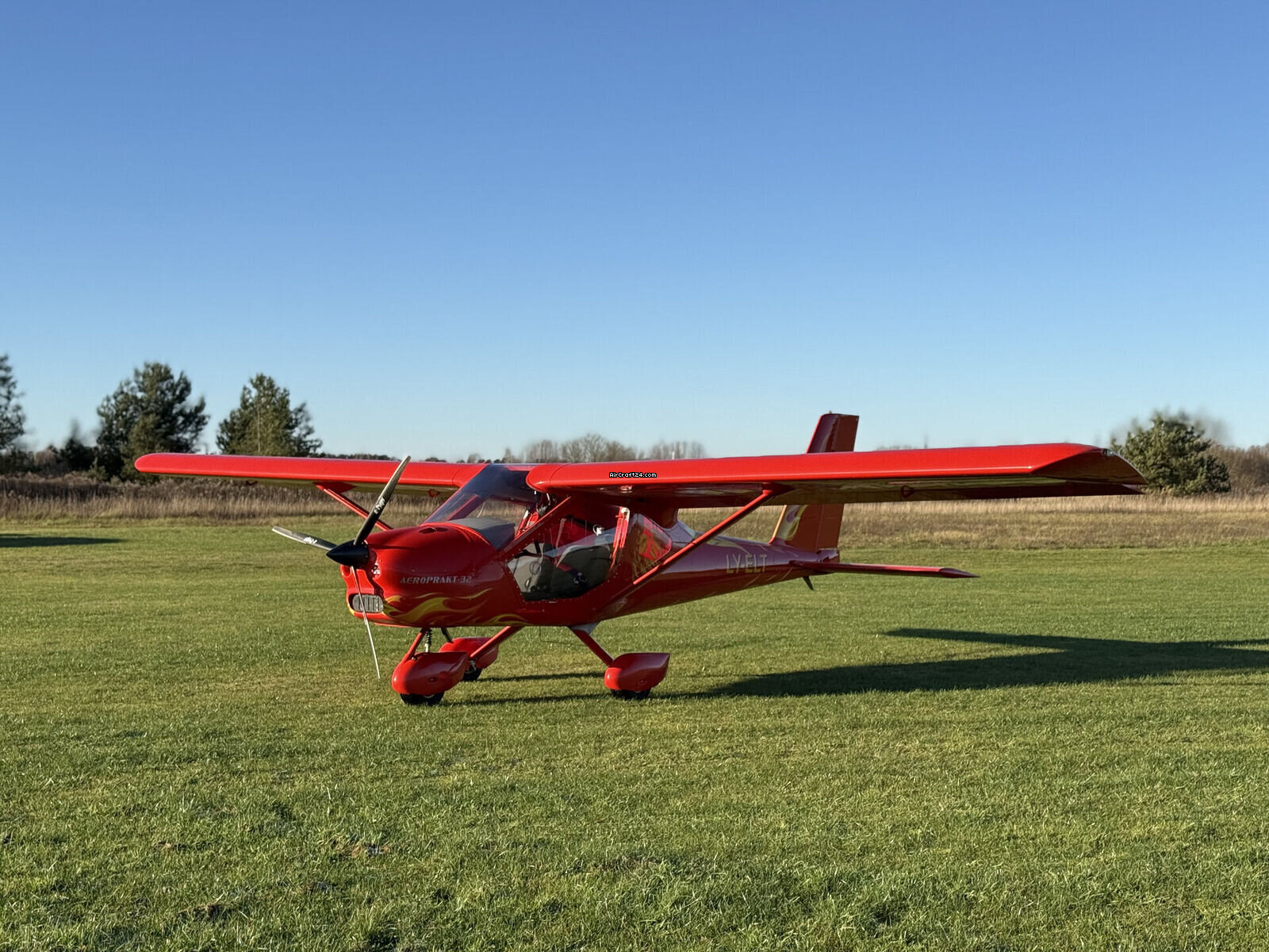 | Description | | Type: | Monomoteur | | Type spécial: | Ultraléger | | Marque: | Aeroprakt Ltd | | Modèle: | A32 | | Millésime: | 2021 | | Immatriculation: | LY-ELT | | Attributs: | Toujours sous hangar | | Visite annuelle: | 4/2025 | | Emplacement: | Lettonie | | Heures totales cellule (TTAF): | 110 h | | Prix: | € 110'000 (~ CHF 102'454) | | UE VAT payée: | non | | Nombre de passagers: | 2 |
