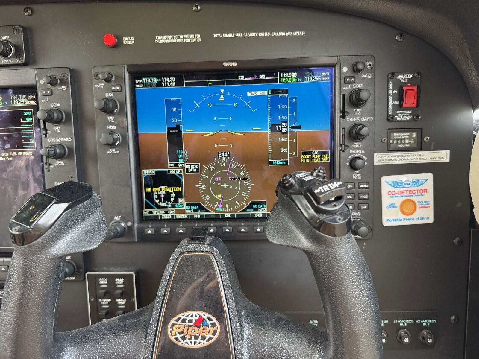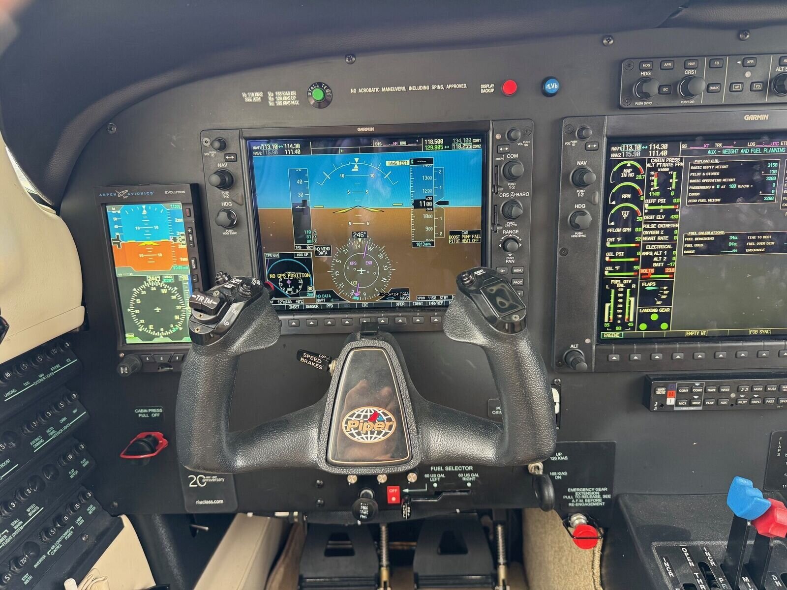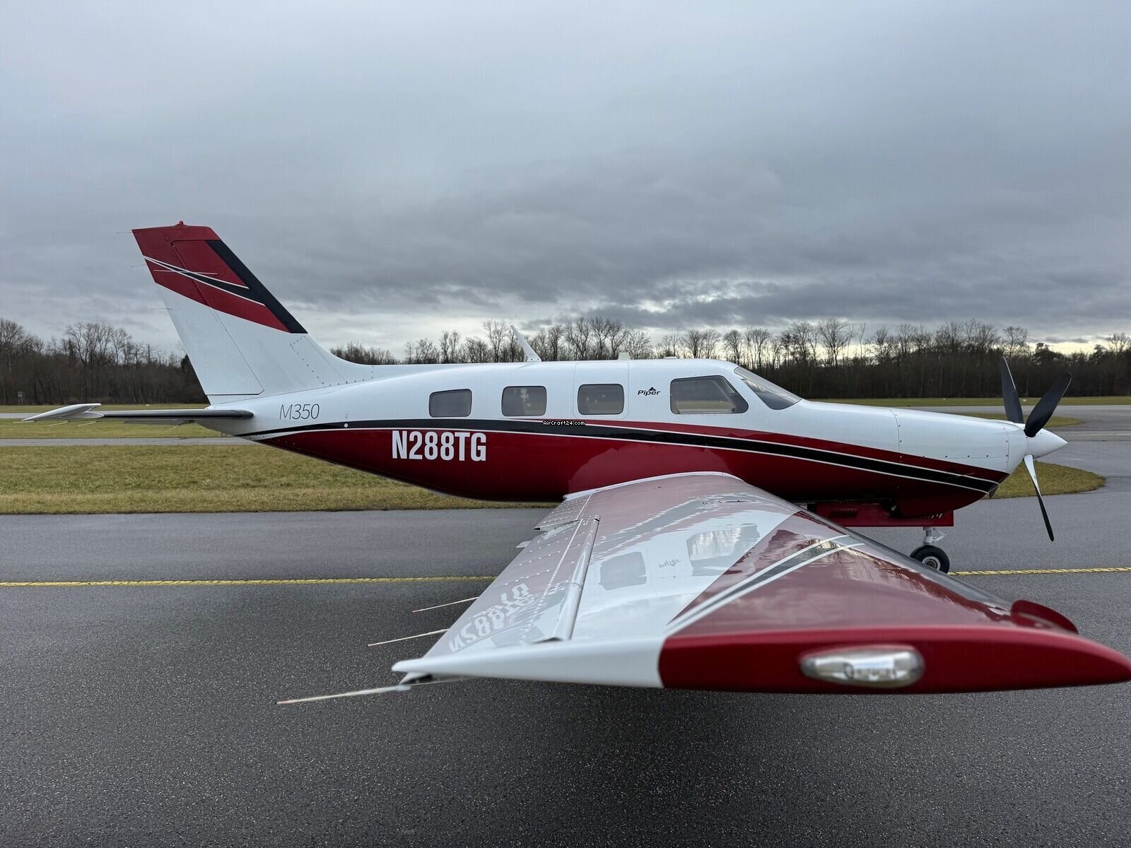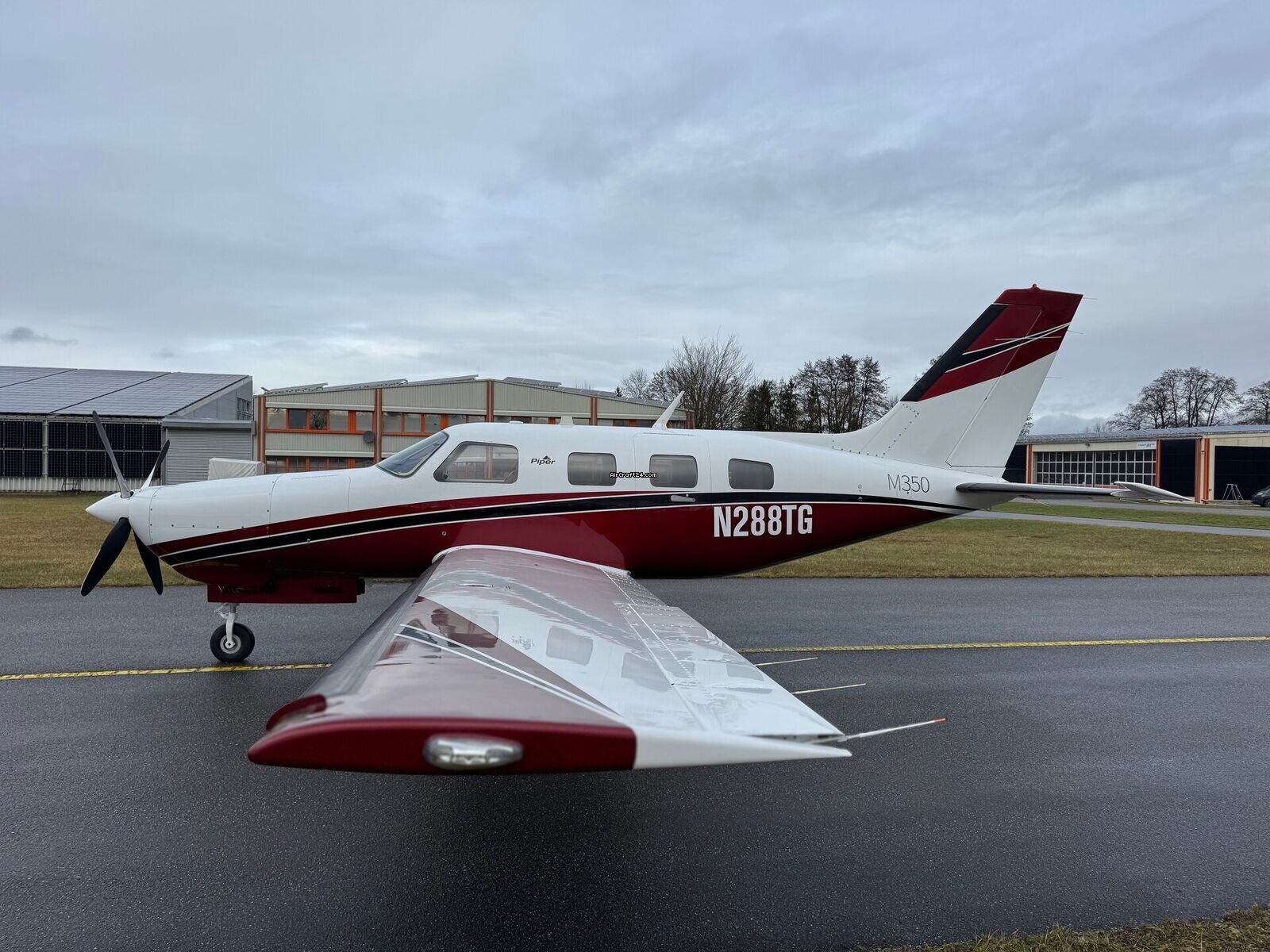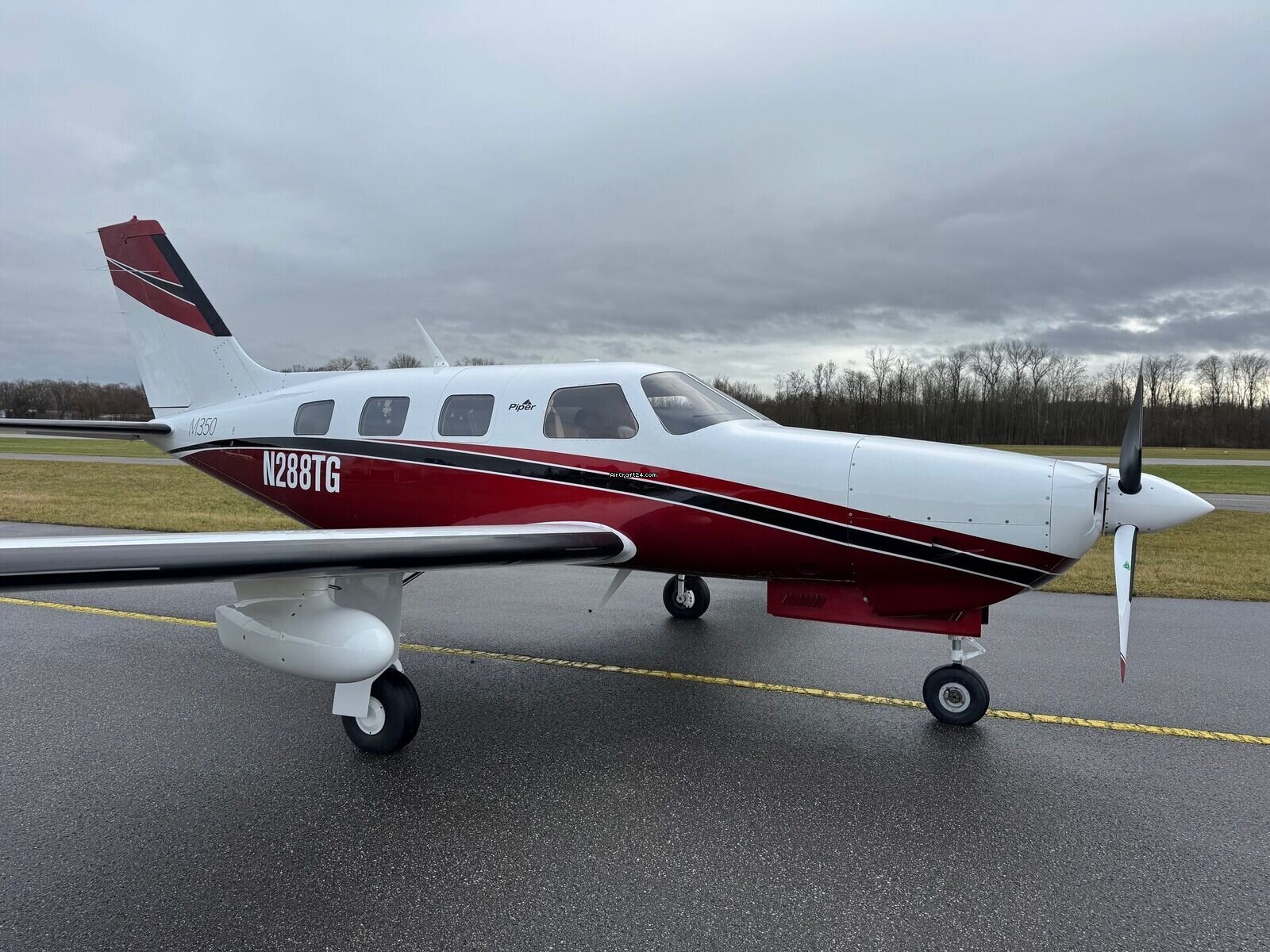 | Description | | Type: | Monomoteur | | Marque: | Piper | | Modèle: | M350 | | Millésime: | 2015 | | Immatriculation: | N288TG | | Attributs: | Epreuve IFR Équipé IFR Toujours sous hangar | | Visite annuelle: | 12/2025 | | Emplacement: | Allemagne, Ellermühle, EDML | | Heures totales cellule (TTAF): | 855 h | | Prix: | US$ 830'000 (~ CHF 657'925) | | UE VAT payée: | oui | | Nombre de passagers: | 6 |
