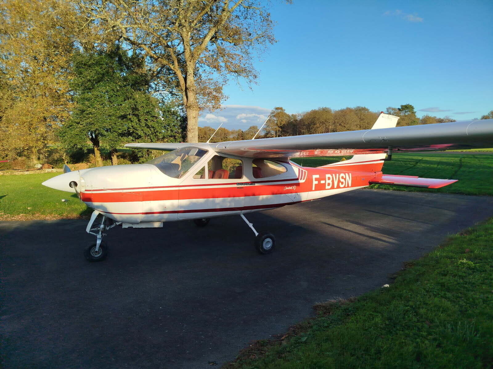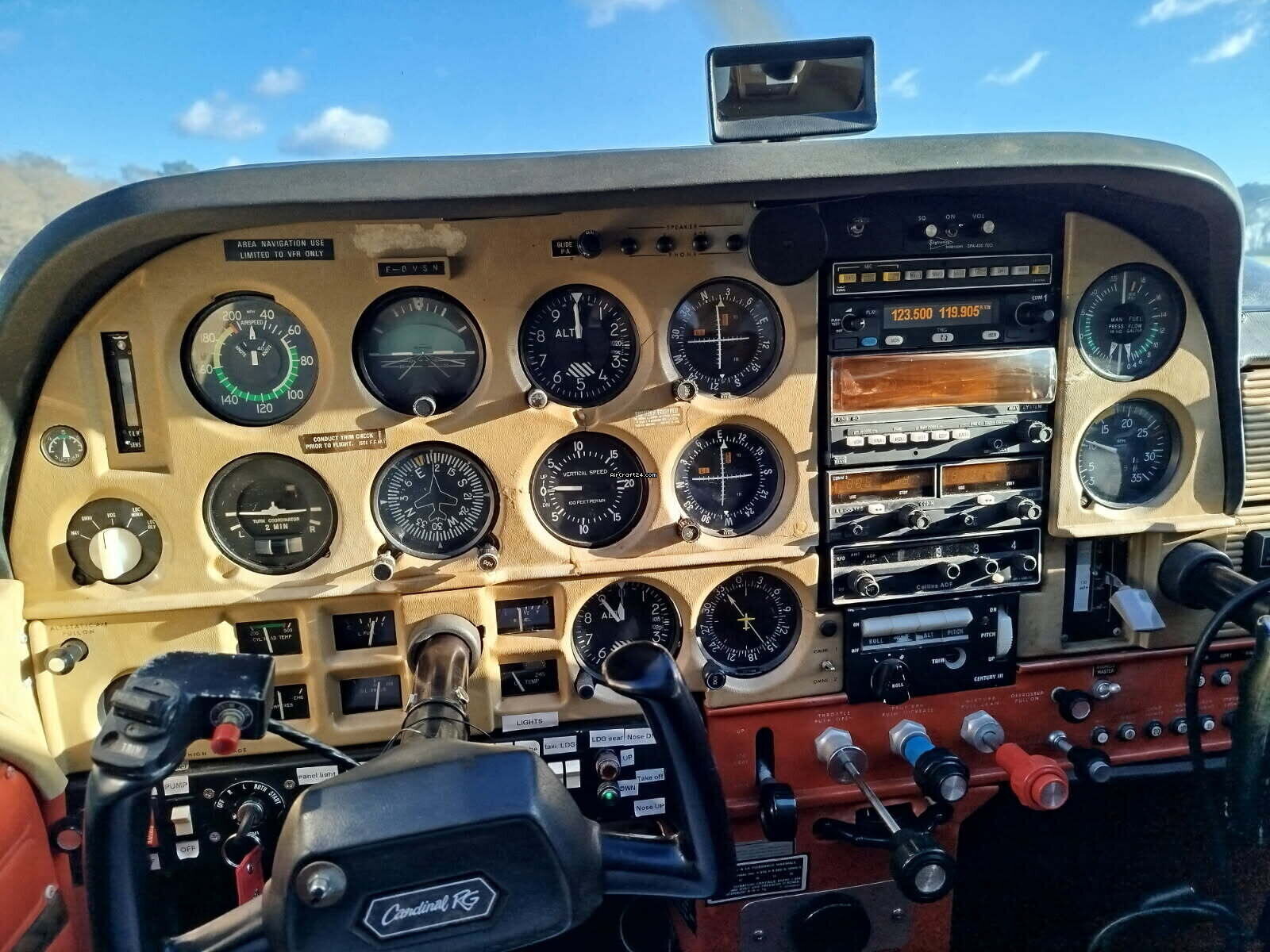 | Description | | Type: | Monomoteur | | Marque: | Cessna | | Modèle: | F-177-RG CARDINAL | | Millésime: | 1974 | | Immatriculation: | F-BVSN | | Numéro de série: | 102 | | Attributs: | Toujours sous hangar | | Visite annuelle: | 2/2026 | | Emplacement: | France, PAMIERS, LFDJ | | Heures totales cellule (TTAF): | 4210 h | | Prix: | € 78'000 (~ CHF 71'035) | | UE VAT payée: | oui | | Nombre de passagers: | 4 |