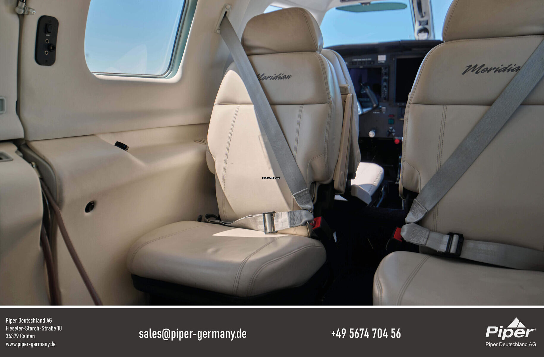 | Equipement | Beautiful Piper Meridian PA-46-500TP in excellent overall condition, with nicely maintained interior. Aircraft has been sold new from factory via Piper Germany to it's original owner who flew it for only 100h. It's now with his second owner. The aircraft has always been Piper Service Center & CAMO maintained.