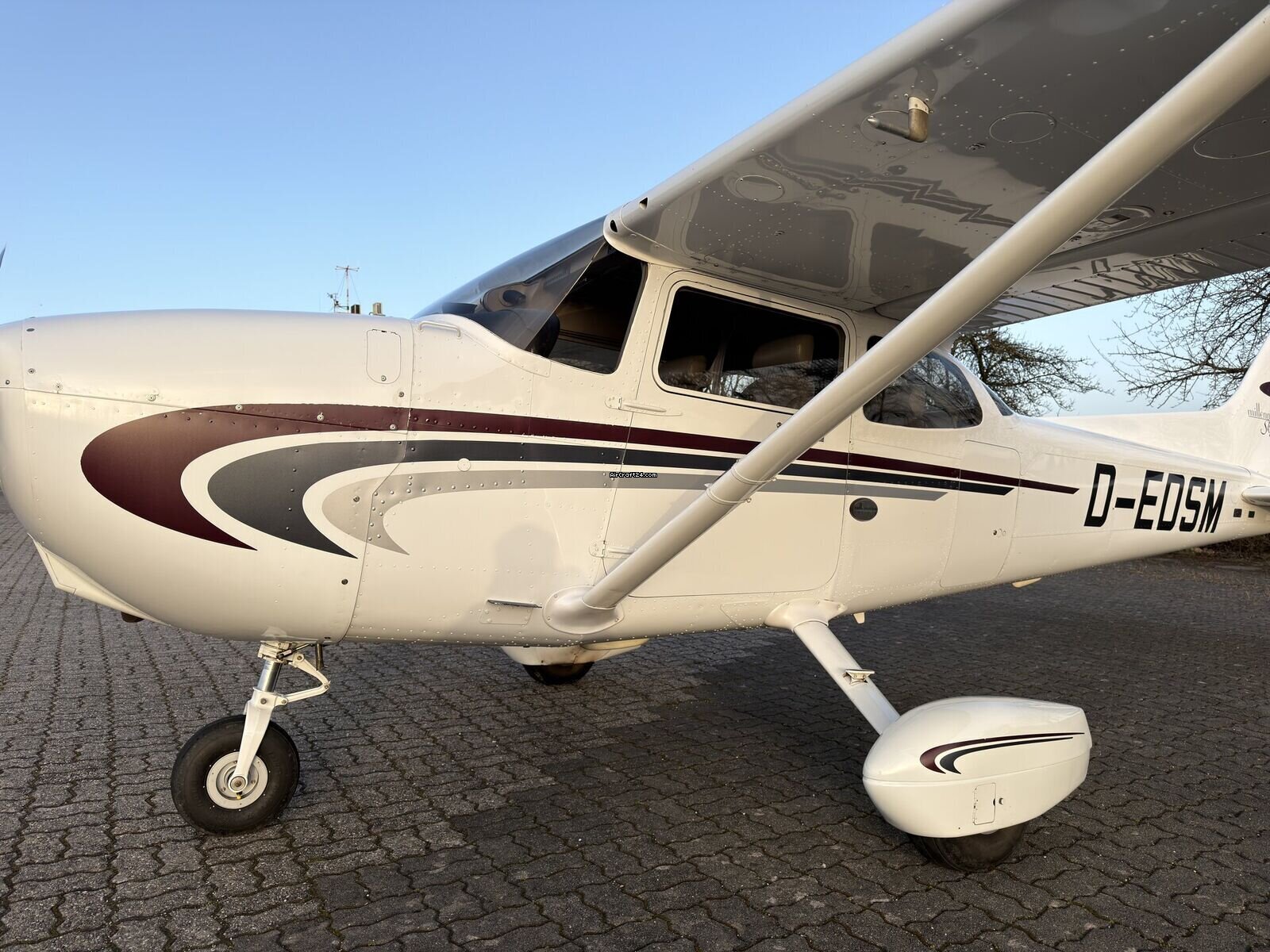 | Description | | Type: | Monomoteur | | Marque: | Cessna | | Modèle: | 172S Skyhawk SP | | Millésime: | 2000 | | Immatriculation: | D-reg | | Attributs: | Epreuve IFR Équipé IFR Toujours sous hangar | | Visite annuelle: | 1/2026 | | Emplacement: | Allemagne, EDRP | | Heures totales cellule (TTAF): | 499 h | | Prix: | € 239'000 (~ CHF 216'176) | | VAT stated sep.: | non | | Nombre de passagers: | 1+3 |