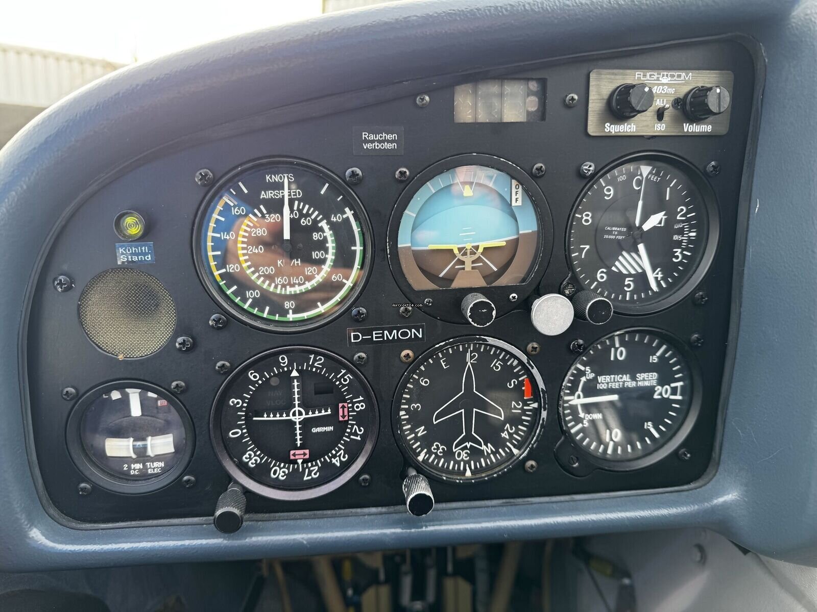 | Description | | Type: | Monomoteur | | Marque: | Diamond | | Modèle: | DV20 | | Millésime: | 1993 | | Immatriculation: | DEMON | | Numéro de série: | 20012 | | Attributs: | Toujours sous hangar | | Visite annuelle: | 8/2025 | | Emplacement: | Allemagne, Eggenfelden, EDME | | Heures totales cellule (TTAF): | 5700 h | | Prix: | € 129'000 (~ CHF 118'667) | | UE VAT payée: | oui | | VAT stated sep.: | oui (19%) | | Nombre de passagers: | 1 | | Atterrissages: | 11000 |