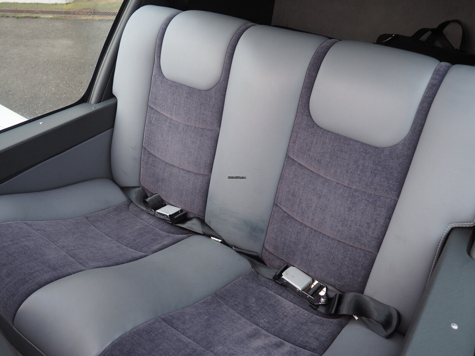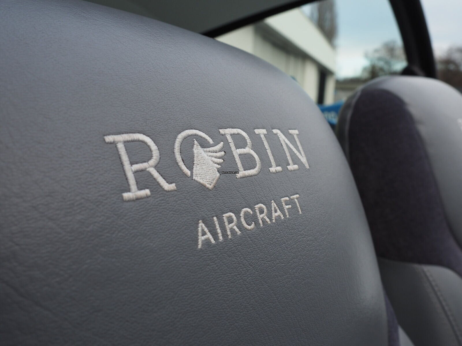 | Intérieur | | The cabin of this Robin DR-400 is a testament to thoughtful ergonomics and premium materials, offering a spacious four-seat configuration that ensures comfort for both pilot and passengers. The interior features a striking slate-grey and charcoal upholstery design. The seats are finished in a durable, high-quality fabric with light grey synthetic leather accents for a modern, automotive-style feel. |