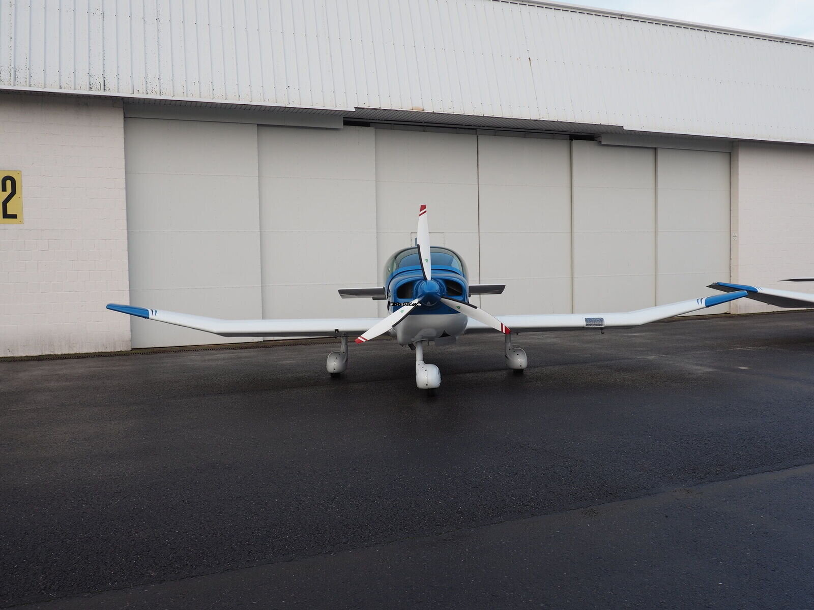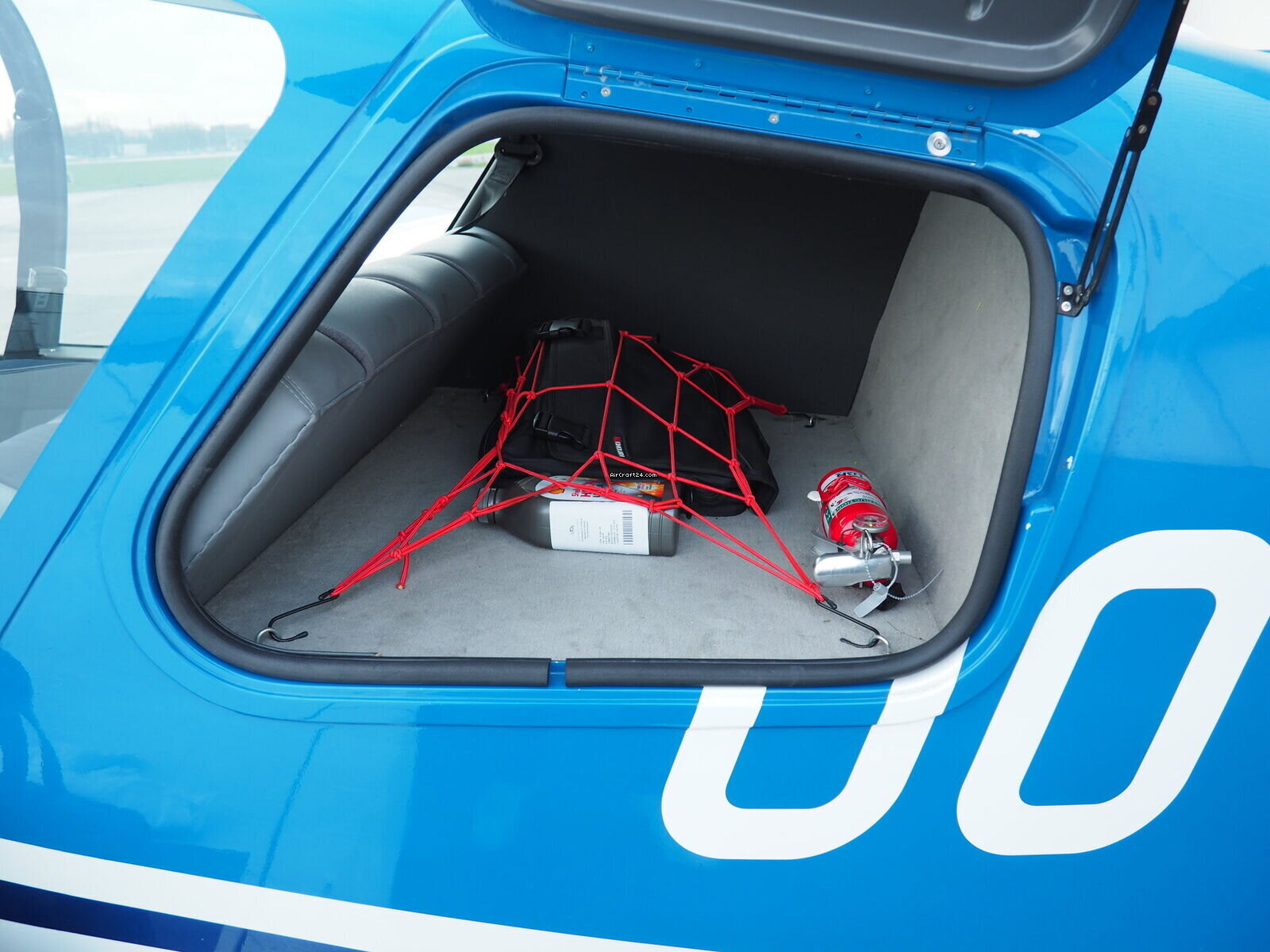 | Extérieur | | Finished in a stunning electric blue over crisp white, this aircraft commands attention on any ramp. The dynamic "S-curve" striping emphasizes the sleek lines of the modern DR-400 fuselage |