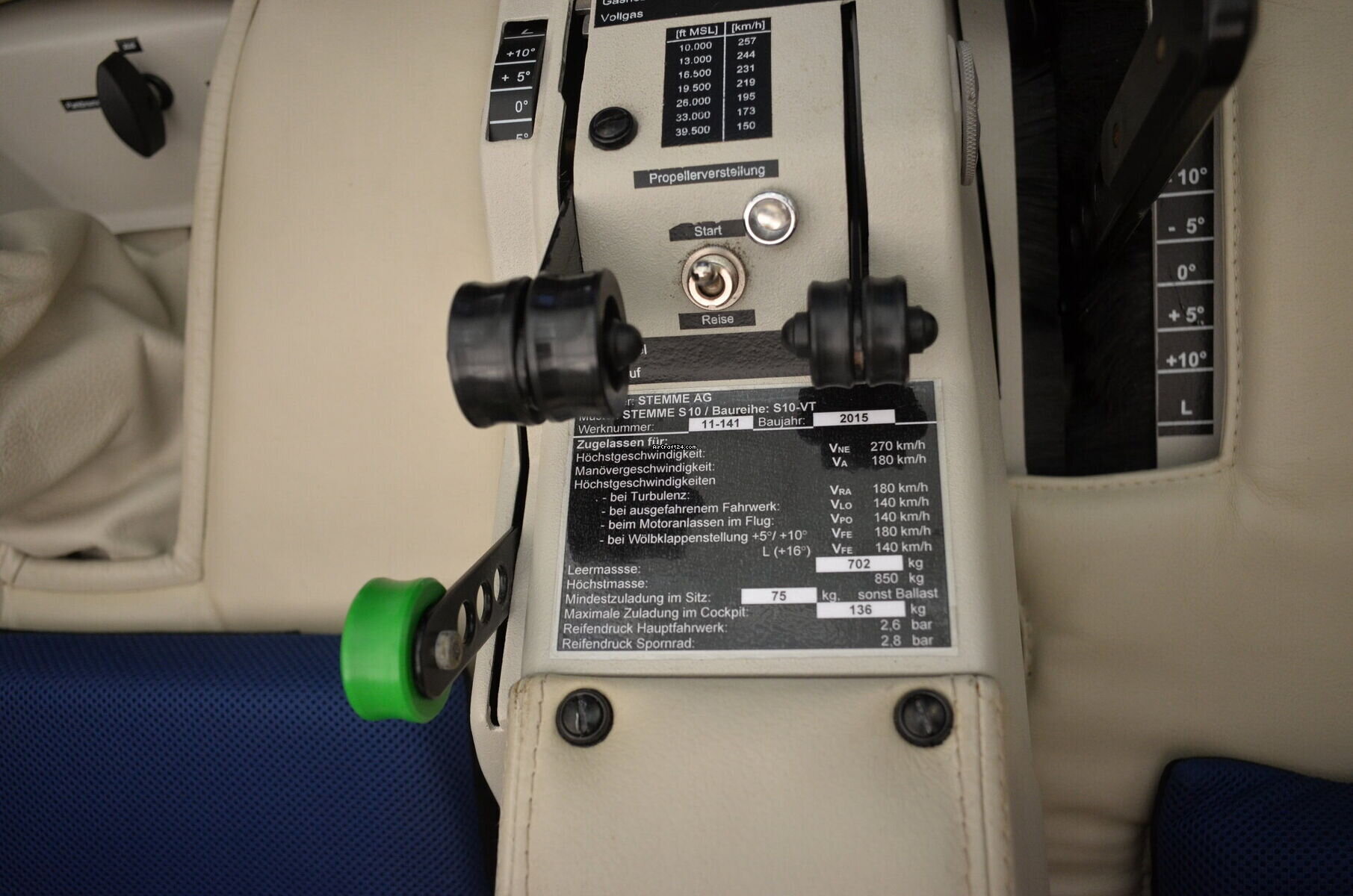 | Description | | Type: | Monomoteur | | Marque: | Stemme | | Modèle: | S10-VT | | Millésime: | 2015 | | Immatriculation: | D-KAIT | | Numéro de série: | 11-141 | | Attributs: | Toujours sous hangar Histoire de dommages | | Visite annuelle: | 10/2025 | | Emplacement: | Allemagne, Lingen (Ems), EDWN | | Heures totales cellule (TTAF): | 440 h | | Prix: | € 298'000 (~ CHF 276'931) | | VAT stated sep.: | non | | Nombre de passagers: | 2 | | Atterrissages: | 324 |